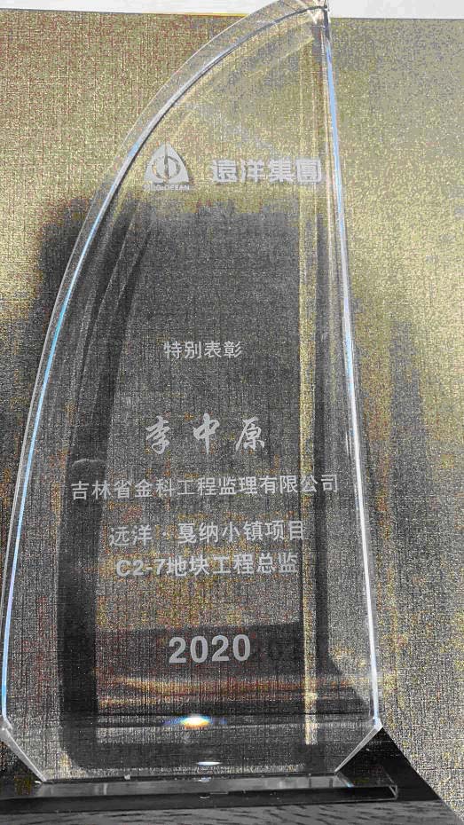 由我公司负责监理的远洋戛纳小镇C2-7组团项目,在项目建设期间与建设单位工作配合良好,得到建设单位的认可。并于2020年10月12日召开表彰大会,对项目总监理工程师李中原授予奖杯,以示鼓励。